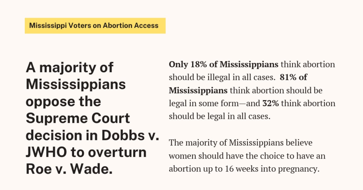 Polling shows 83% of Mississippi voters oppose criminal investigations or charges against women suspected of having an abortion.